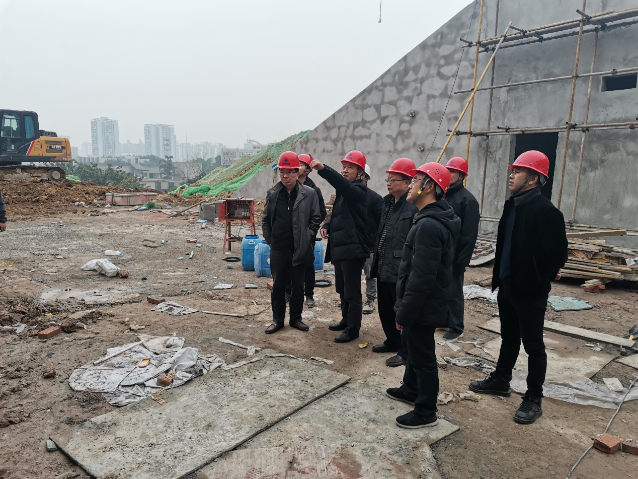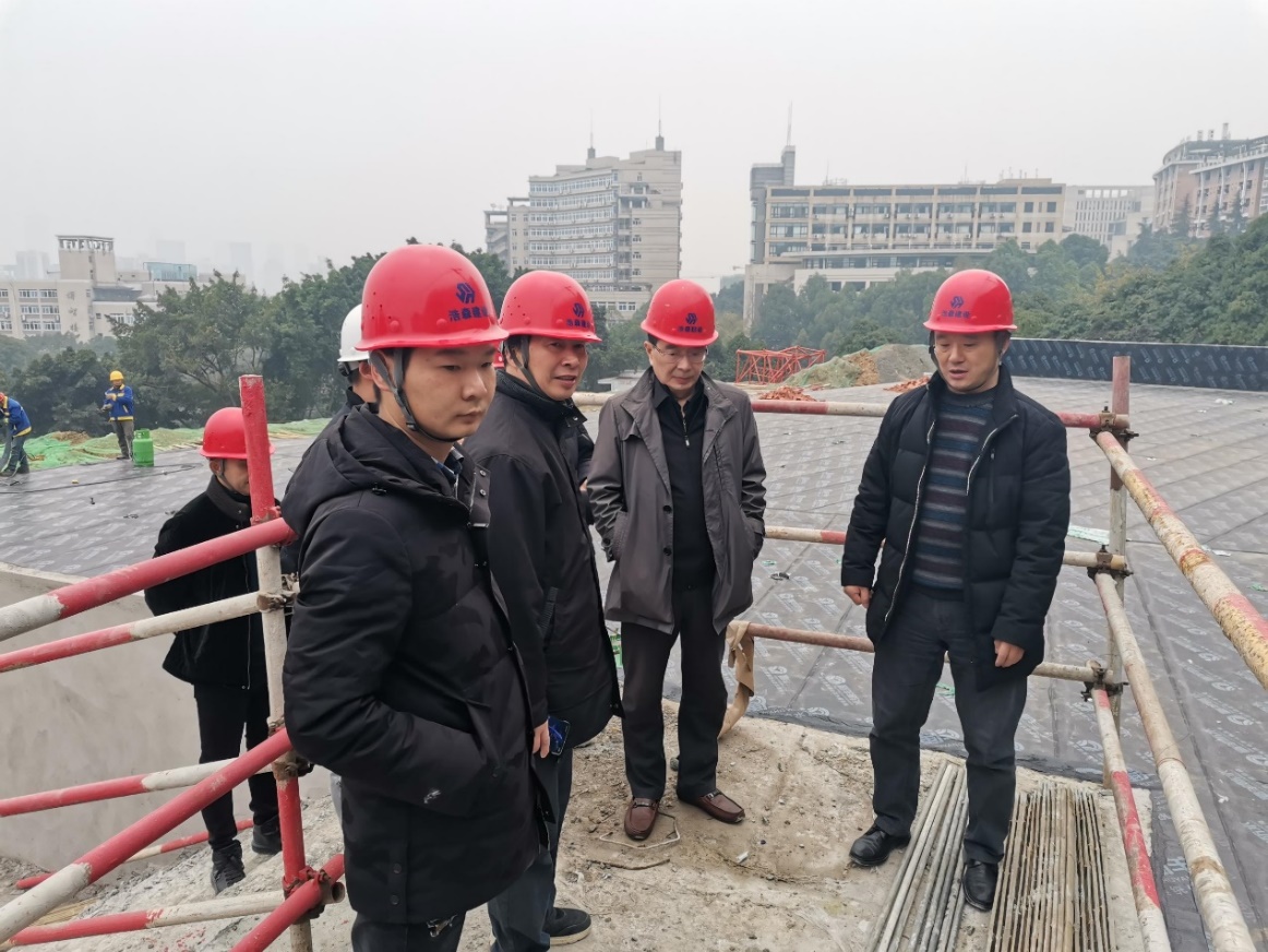 2021年12月23日上午10时,副校长赵骅,基建处陈安敏、李长兴、罗家伦一行对学生活动中心工程进行了实地查看。施工单位、监理单位和建设单位现场代表等各方技术管理人员陪同检查。陈安敏处长和施工单位项目经理先后向赵骅副校长和随行同志介绍了工程的施工计划、进度安排、质量控制、安全保障和施工难点等情况。