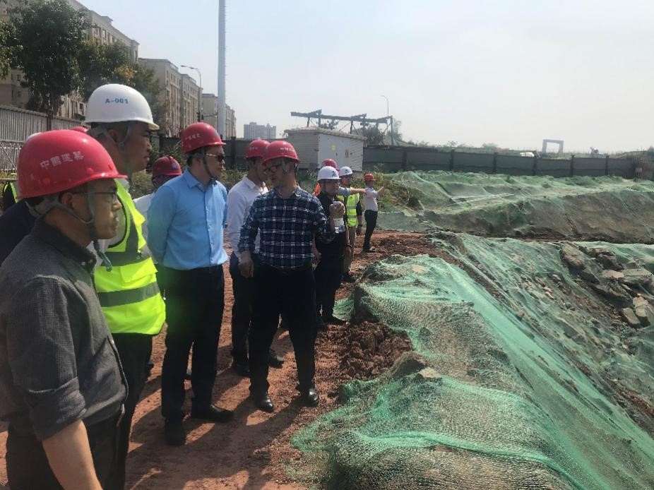 温涛校长一行首先对茶园校区项目施工现场进行视察,施工单位详细介绍了各建筑物坐落情况、建设进度、质量保障和人员安全等相关情况。