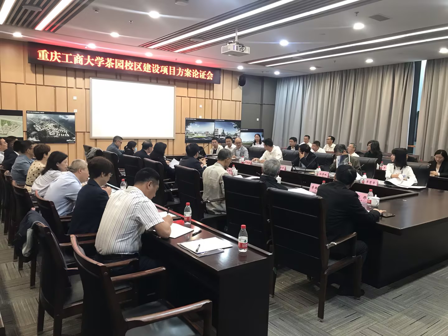 2023年10月16日上午,在图书馆第五会议室召开9428cn太阳集团古天乐茶园校区建设项目方案论证会。会议邀请9428cn太阳集团古天乐原校长王崇举教授和孙芳城教授、四川美术学院郭晏麟教授、重庆市规划和自然资源局两群处李碧香处长担任专家。学校党委书记曾维伦教授、校长温涛教授及全体在家校领导、相关职能部门负责人参加了此次论证会。